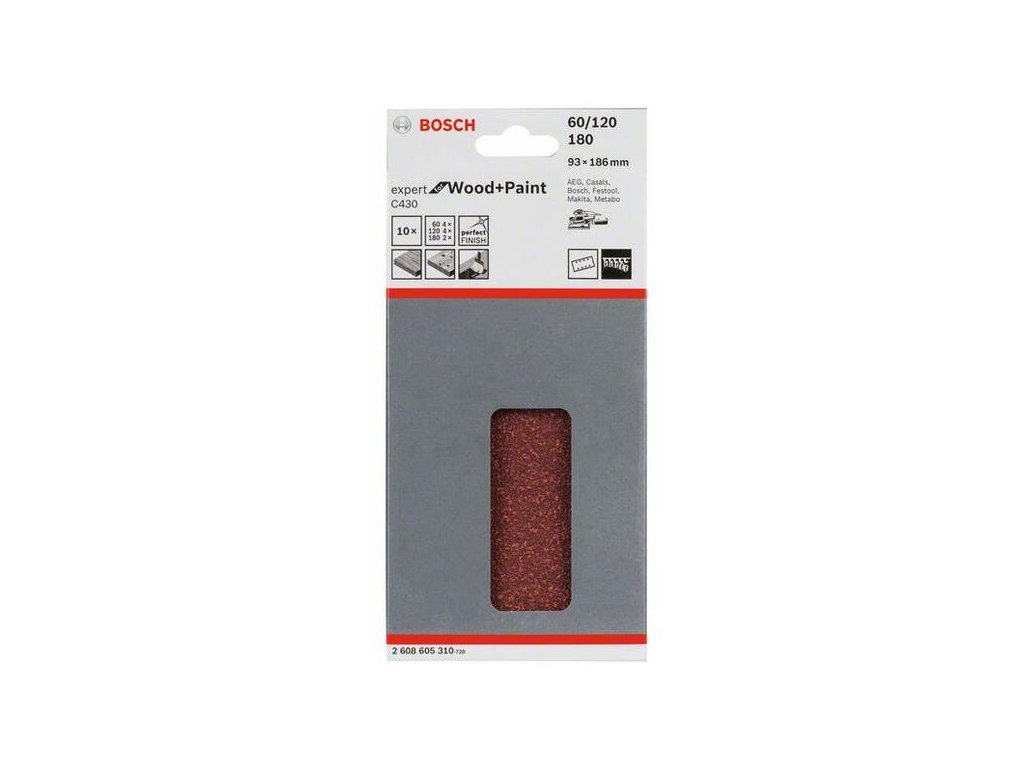 Bosch Sada Brúsnych papierov C430, 93 186 mm, P60/120/180 2608605310