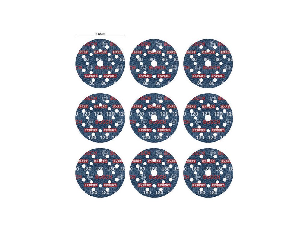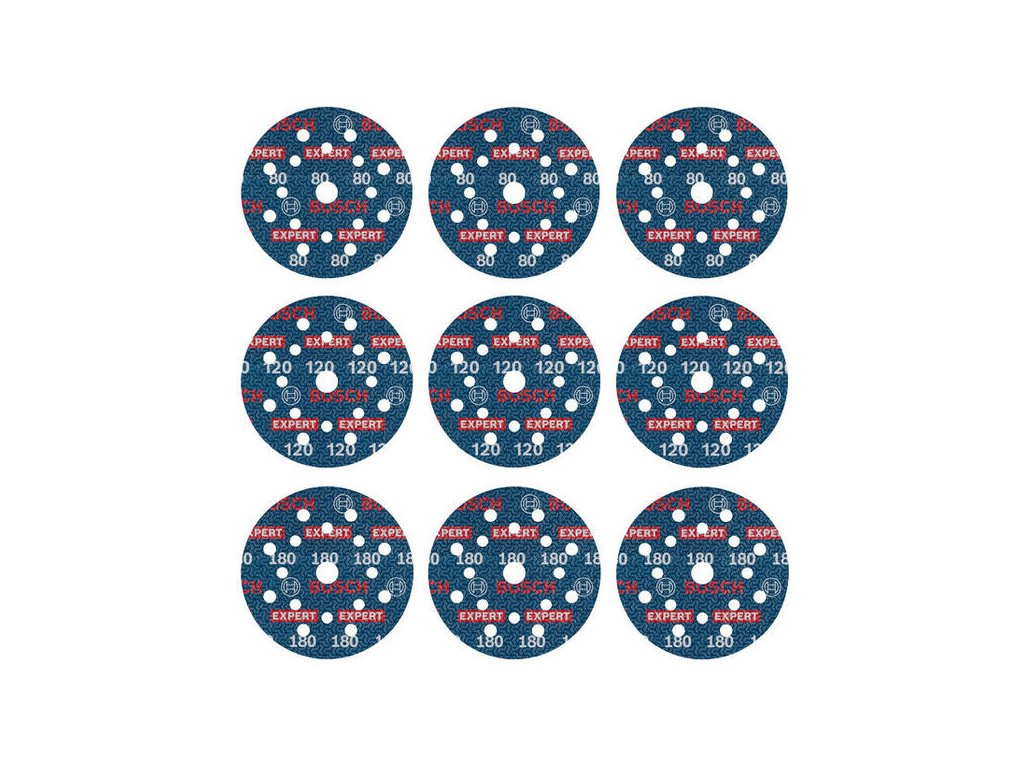 Sada fóliových brúsnych kotúčov EXPERT O780, 125 mm, 80, 120, 180, 9 ks - Bosch