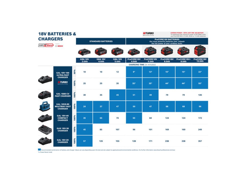 To najlepšie z oboch svetov. Ľahké 4.0Ah ProCORE batérie (jednoradové články) pre bežnú prácu a vŕtanie nad hlavou, plus dve masívne 8.0Ah batérie pre najťažšie úlohy vyžadujúce maximálny výkon a výdrž.