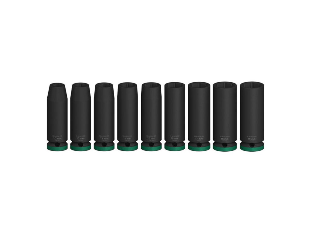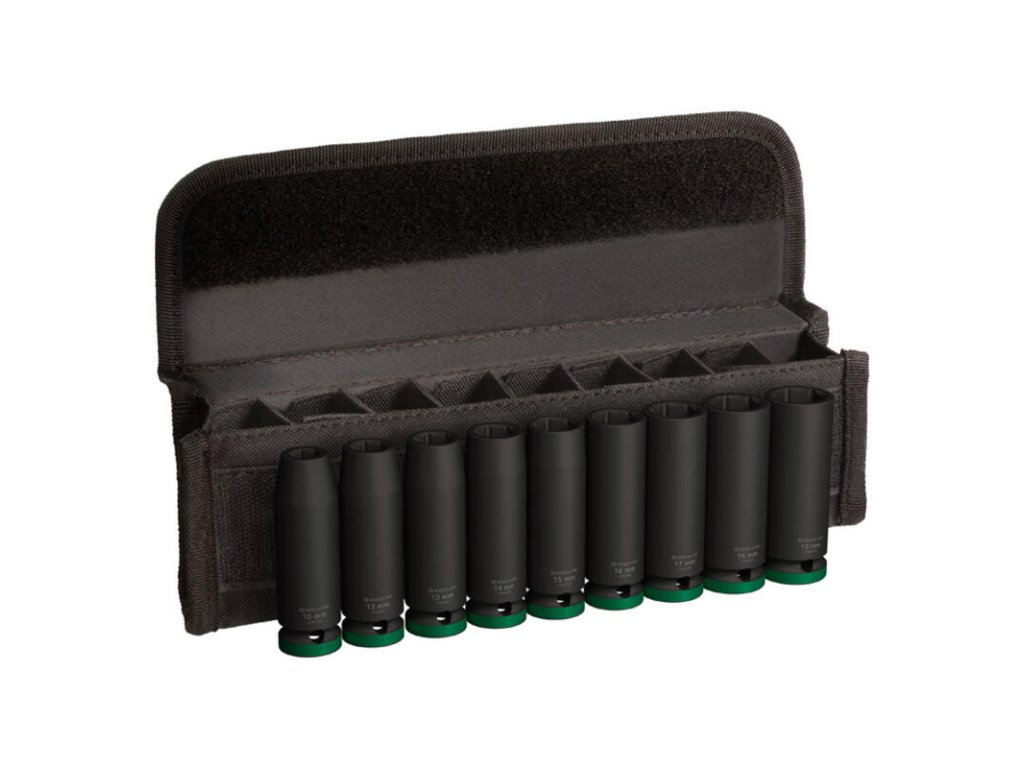 Robustné skrutkovanie! Sadu PRO Impact Socket Set môžete použiť na prácu so šesťhrannými skrutkami, svorníkmi a maticami pomocou štvorhranného kľúča. Navrhli sme ju tak, aby vám pomohla pri skrutkovaní pri inštaláciách zariadení alebo iných typoch ťažkých priemyselných prác. Nástrčné kľúče v sade PRO Impact Socket Set sme vyrobili z tepelne upravenej CRMO (chróm-molybdénovej) ocele a dali sme im hrubé steny, aby odolali vysokému krútiacemu momentu. Na ochranu pred hrdzou a koróziou sme pridali čiernu fosfátovú vrstvu. Nástrčné kľúče sú označené laserom a farebne odlíšené, aby ste ihneď videli ten, ktorú potrebujete. Majú drážku a priechodný otvor na ich zaistenie na rázovom uťahovači pomocou nášho kolíka a krúžka – vždy, keď potrebujete extra silné držanie.