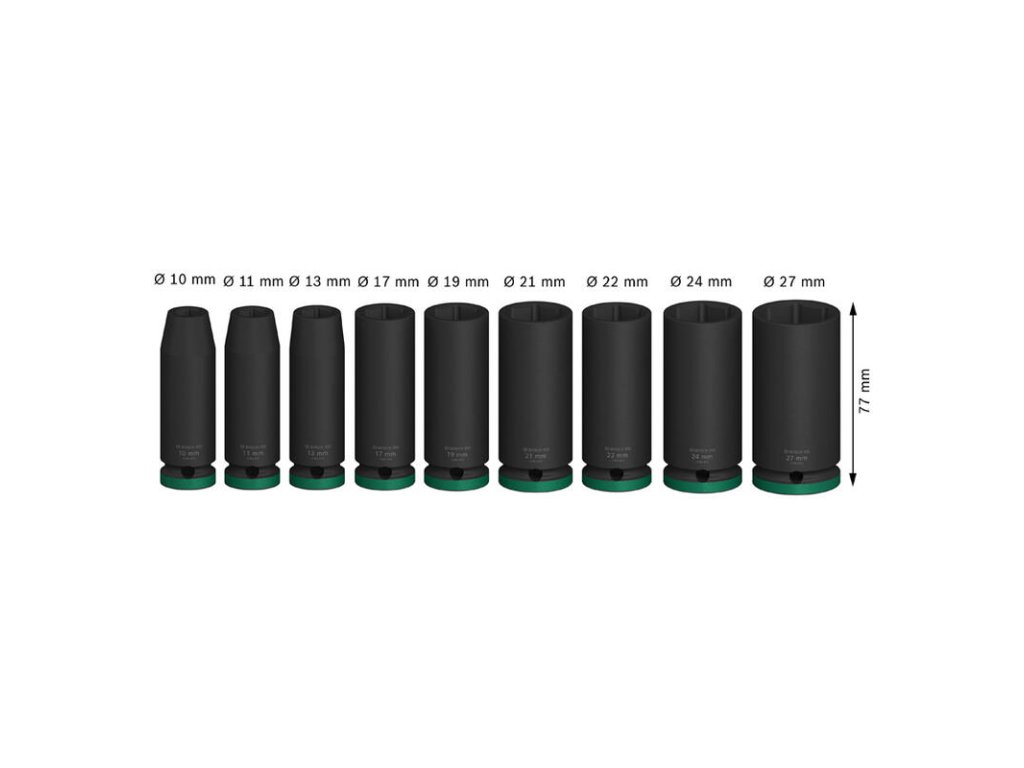 Robustné skrutkovanie! Sadu PRO Impact Socket Set môžete použiť na prácu so šesťhrannými skrutkami, svorníkmi a maticami pomocou štvorhranného kľúča. Navrhli sme ju tak, aby vám pomohla pri skrutkovaní pri inštaláciách zariadení alebo iných typoch ťažkých priemyselných prác. Nástrčné kľúče v sade PRO Impact Socket Set sme vyrobili z tepelne upravenej CRMO (chróm-molybdénovej) ocele a dali sme im hrubé steny, aby odolali vysokému krútiacemu momentu. Na ochranu pred hrdzou a koróziou sme pridali čiernu fosfátovú vrstvu. Nástrčné kľúče sú označené laserom a farebne odlíšené, aby ste ihneď videli ten, ktorú potrebujete. Majú drážku a priechodný otvor na ich zaistenie na rázovom uťahovači pomocou nášho kolíka a krúžka – vždy, keď potrebujete extra silné držanie.