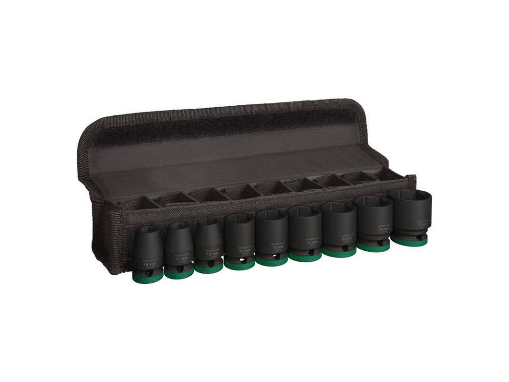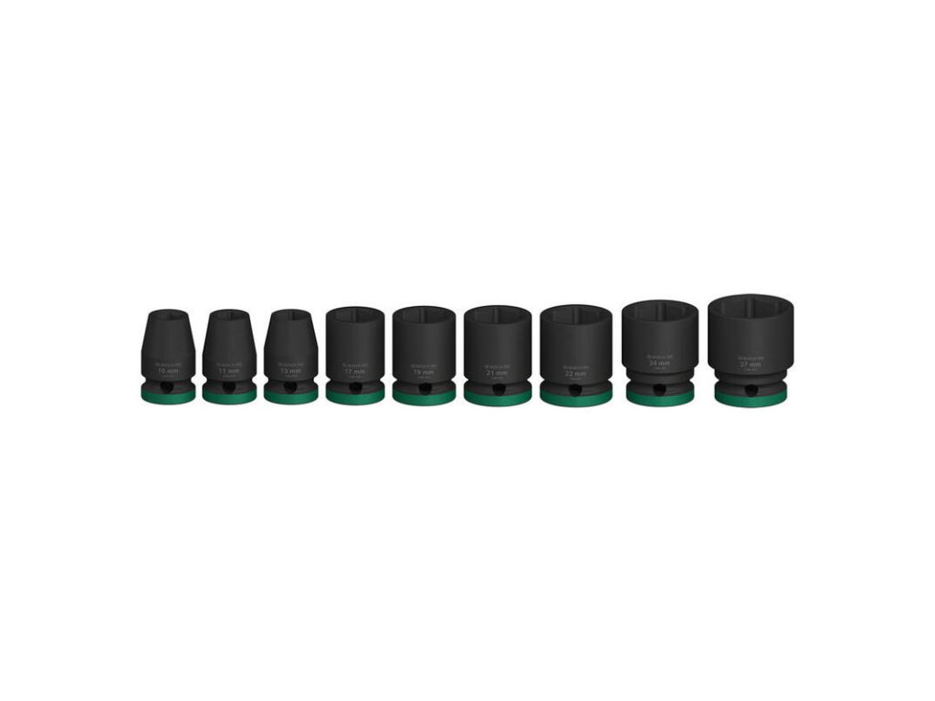 Robustné skrutkovanie! Sadu PRO Impact Socket Set môžete použiť na prácu so šesťhrannými skrutkami, svorníkmi a maticami pomocou štvorhranného kľúča. Navrhli sme ju tak, aby vám pomohla pri skrutkovaní pri inštaláciách zariadení alebo iných typoch ťažkých priemyselných prác. Nástrčné kľúče v sade PRO Impact Socket Set sme vyrobili z tepelne upravenej CRMO (chróm-molybdénovej) ocele a dali sme im hrubé steny, aby odolali vysokému krútiacemu momentu. Na ochranu pred hrdzou a koróziou sme pridali čiernu fosfátovú vrstvu. Nástrčné kľúče sú označené laserom a farebne odlíšené, aby ste ihneď videli ten, ktorú potrebujete. Majú drážku a priechodný otvor na ich zaistenie na rázovom uťahovači pomocou nášho kolíka a krúžka – vždy, keď potrebujete extra silné držanie.
