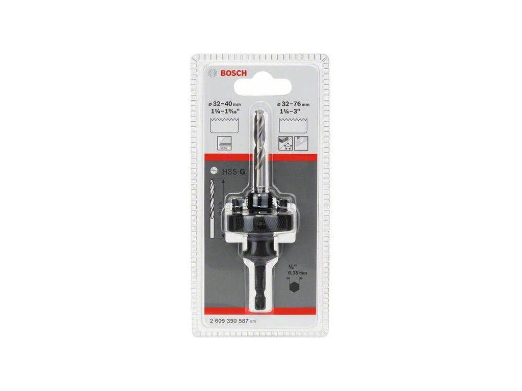 Bosch Šesťhranný adaptér 5/8" závitom 18UNF kľuč 6,35mm, vrták HSS-G pre dierovky 32-76mm 2609390587