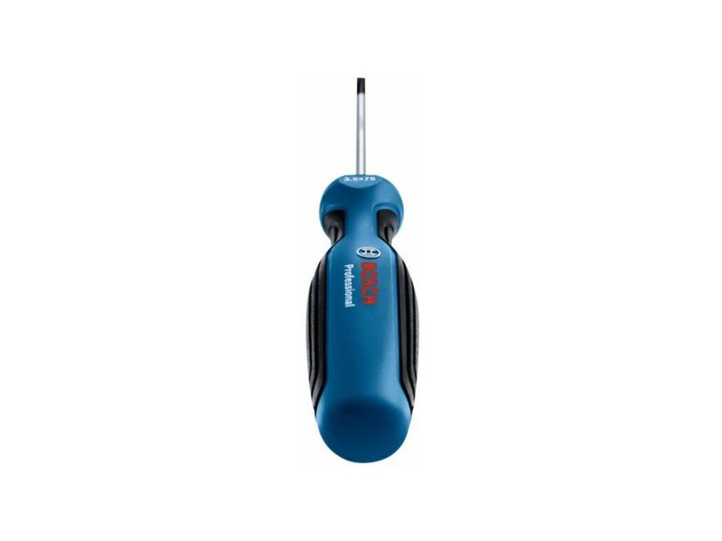 Skrutkovač Skrutkovač SL3,5 × 75, Skrutkovač Bosch SL3.5 Professional s dĺžkou drieku 75 mm je ideálny na skrutkovanie a povoľovanie pevných skrutiek. Vďaka ergonomicky tvarovanej a mäkkej rukoväti sa veľmi pohodlne a ľahko používa. Veľkosť je vyznačená na rukoväti, takže môžete rýchlo identifikovať správny skrutkovač pre danú prácu.