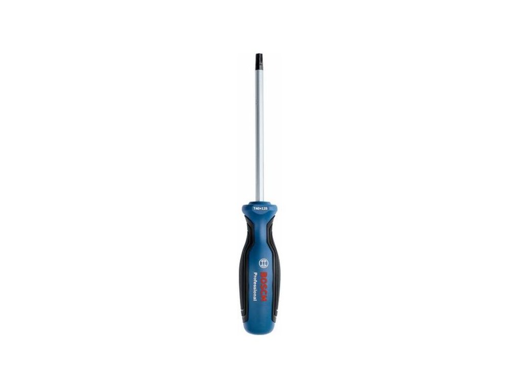 Skrutkovač Skrutkovač TX40 × 125, Profesionálny skrutkovač Bosch TX40 Torx s driekom z vysoko odolnej nástrojovej ocele S2 je skonštruovaný tak, aby vydržal a zvládol aj tie najnáročnejšie práce. Vysoko presný hrot zakaždým poskytuje presné výsledky a ergonomicky tvarovaná a mäkká rukoväť zaisťujú pohodlné používanie. Veľkosti sú uvedené na rukoväti, takže môžete rýchlo nájsť správny skrutkovač na prácu. Dĺžka hriadeľa 75 mm. Ďalšie dostupné veľkosti: TX10 × 75 mm, TX15 × 75 mm, TX20 × 100 mm, TX25 × 100 mm, TX30 × 125 mm Hang Tag