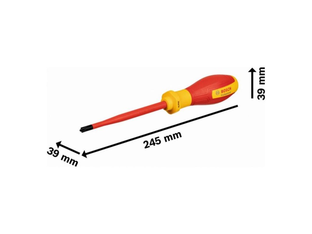 Skrutkovač Skrutkovač VDE SL/PH 2 × 125, Profesionálni remeselníci potrebujú náradie, ktoré sa ľahko používa a spĺňa všetky legislatívne požiadavky. Skrutkovač Bosch Professional SL/PH 2 × 125 umožňuje uťahovanie a uvoľňovanie skrutiek, a to aj keď dôjde k nečakanému kontaktu s komponentmi pod napätím. Toto náradie spĺňajúce požiadavky noriem je izolované termoplastickým elastomérom (TPE). Toto náradie bolo testované až do 10 000 V a disponuje certifikáciou VDE až do 1 000 V podľa normy DIN EN/IEC 60900. Náš skrutkovač VDE je presný a odolný; jeho štíhly driek a odolný hrot zaručujú presnú montáž. Mäkký úchop a vynikajúca ergonomická konštrukcia poskytujú komfort ruke používateľa a umožňujú komfortnú pácu. Driek skrutkovača z ocele S2 má izolovaný ochranný povlak a rukoväť je izolovaná TPE. Vďaka ručnému náradiu VDE pridanému do nášho radu Bosch Professional získavate náradie spoľahlivej kvality Bosch, ktoré spĺňa vaše požiadavky. Skrutkovače Bosch Professional VDE majú antirolovaciu konštrukciu, ktorá zabraňuje, aby sa odkotúľali z miesta práce. Navyše profil a veľkosť sú zreteľné viditeľné na viacerých pozíciách na rukoväti.