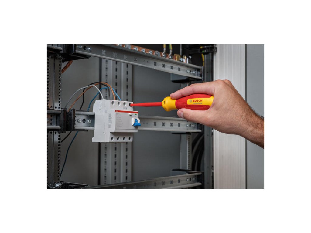 Skrutkovač Skrutkovač VDE TX15 × 75, Profesionálni remeselníci potrebujú náradie, ktoré sa ľahko používa a spĺňa všetky legislatívne požiadavky. Skrutkovač Bosch Professional VDE TX15 × 75 umožňuje uťahovanie a uvoľňovanie skrutiek, a to aj keď dôjde k nečakanému kontaktu s komponentmi pod napätím. Toto náradie spĺňajúce požiadavky noriem je izolované termoplastickým elastomérom (TPE). Toto náradie bolo testované až do 10 000 V a disponuje certifikáciou VDE až do 1 000 V podľa normy DIN EN/IEC 60900. Náš skrutkovač VDE je presný a odolný; jeho štíhly driek a odolný hrot zaručujú presnú montáž. Mäkký úchop a vynikajúca ergonomická konštrukcia poskytujú komfort ruke používateľa a umožňujú komfortnú pácu. Driek skrutkovača z ocele S2 má izolovaný ochranný povlak a rukoväť je izolovaná TPE. Vďaka ručnému náradiu VDE pridanému do nášho radu Bosch Professional získavate náradie spoľahlivej kvality Bosch, ktoré spĺňa vaše požiadavky. Skrutkovače Bosch Professional VDE majú antirolovaciu konštrukciu, ktorá zabraňuje, aby sa odkotúľali z miesta práce. Navyše profil a veľkosť sú zreteľné viditeľné na viacerých pozíciách na rukoväti Hang Tag