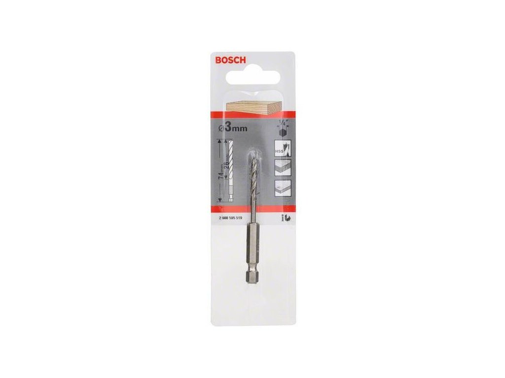 Bosch Špirálový vrták do dreva s 1/4" šesťhrannou stopkou 3 x 33 x 74 mm (2.608.595.519)