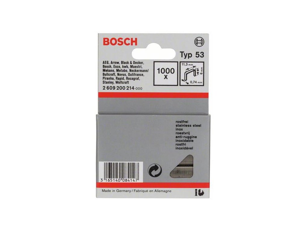 Bosch Sponka z jemného drôtu typ 53, Nehrdzavejúca oceľ, 11,4 x 6 mm, 2.609.200.214