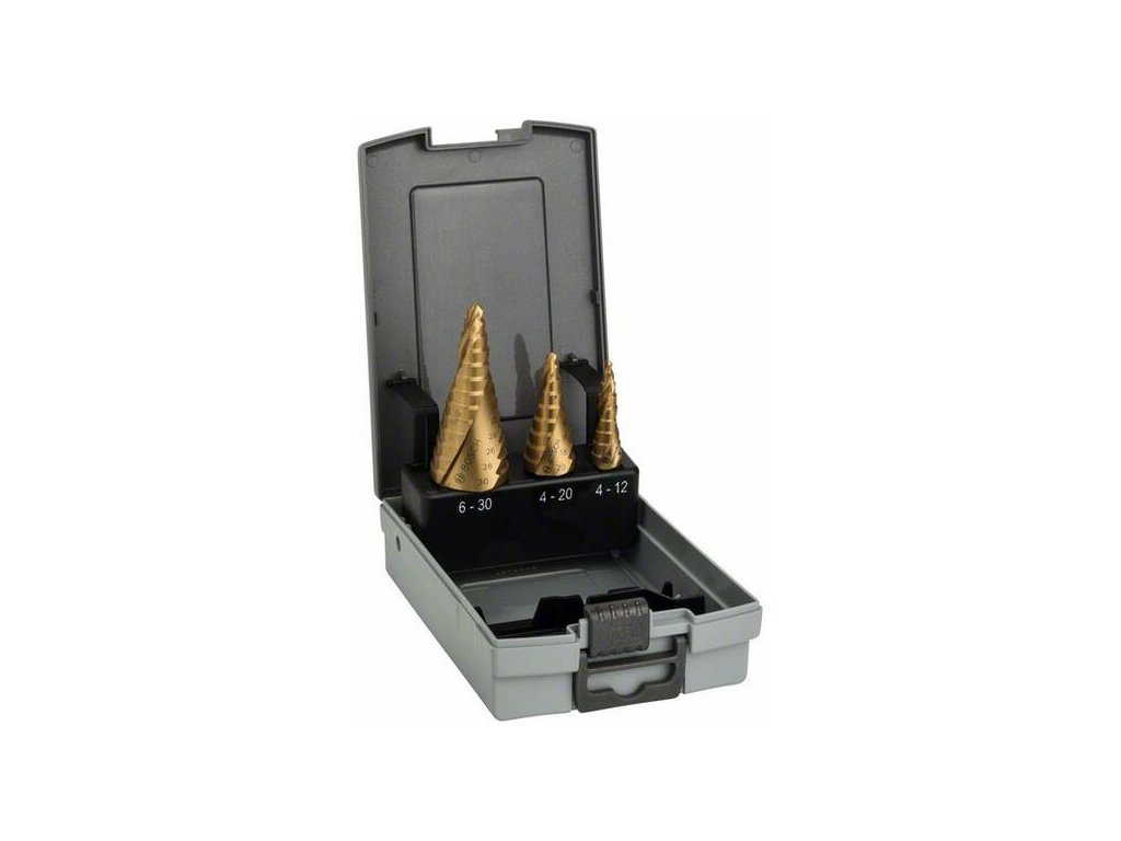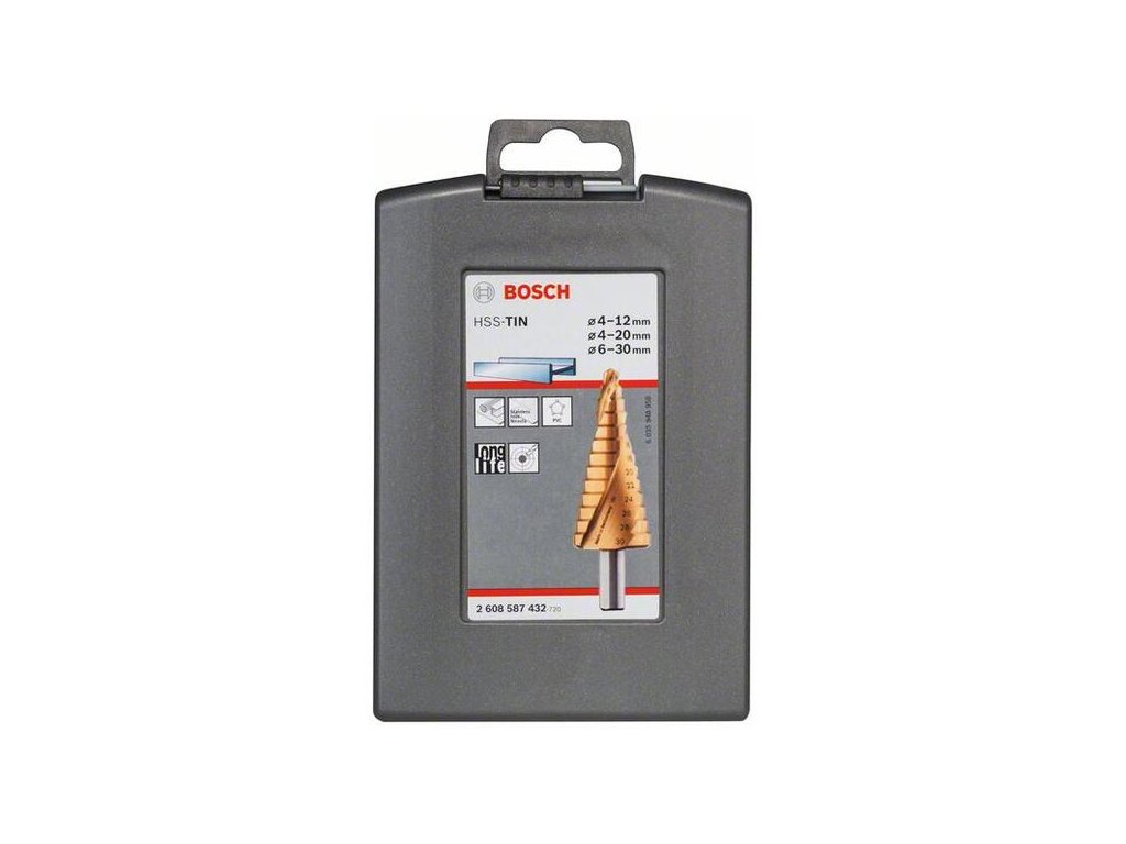 Bosch stupňovitý vrták do kovu HSS-TiN, priemer: 4-12/ 4-20/ 6-30mm, 2.608.587.432