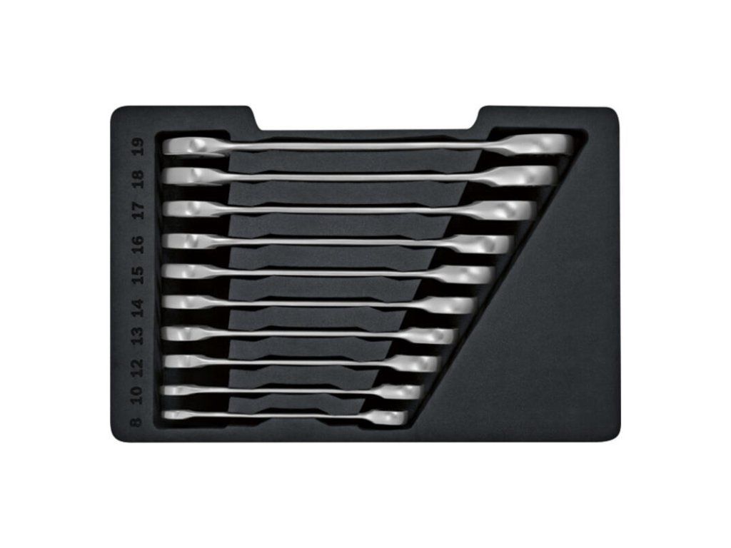 Zrýchlite svoju prácu s touto sadou račňových kľúčov Bosch PRO. Kombinácia klasického vidlicového kľúča a očka s integrovanou račňou vám umožní uťahovať skrutky bez nutnosti neustáleho prekladania kľúča. Dodávané v praktickom rolovacom puzdre.