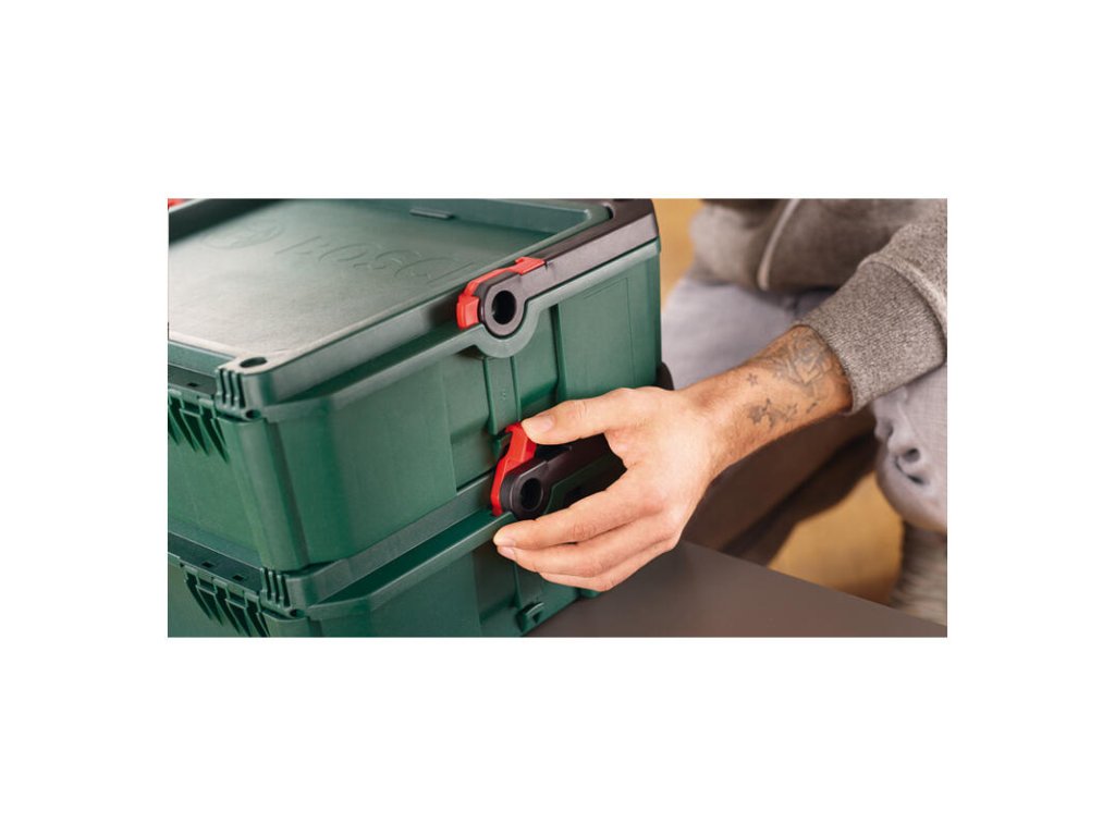 - Stohovateľný a spojiteľný systém na jednoduché prenášanie viacerých boxov SystemBox