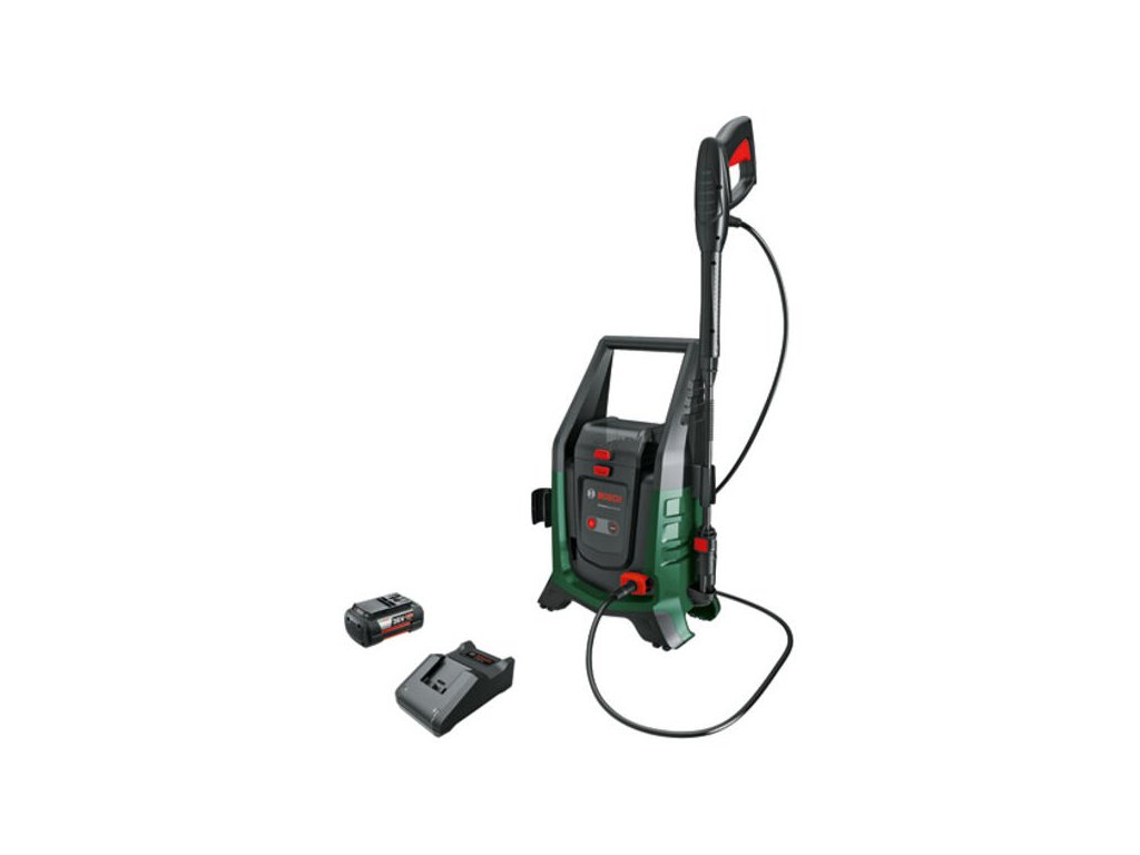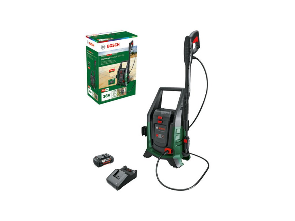 Akumulátorový vysokotlakový čistič UniversalAquatak 36V-100; Výkonný akumulátorový vysokotlakový čistič na čistenie v domácnosti aj na cestách; Komfortné akumulátorové tlakové čistenie triedy 36 V; Výkonný vysokotlakový čistič s efektívnou spotrebou vody; Možnosť prístupu k vode aj na vzdialených miestach vďaka funkcii samonasávania; Všestranné čistenie s 2 režimami tlaku a trojitou dýzou; Kompaktná konštrukcia na ľahšie prenášanie a uloženie; Technológia Syneon zaručuje optimálny výkon a maximálnu dobu prevádzky; Kompatibilné s akumulátorom Bosch 36V POWER FOR ALL; 1 akumulátor 36 V 4,0 Ah; Nabíjačka AL 36V-20; V škatuli
