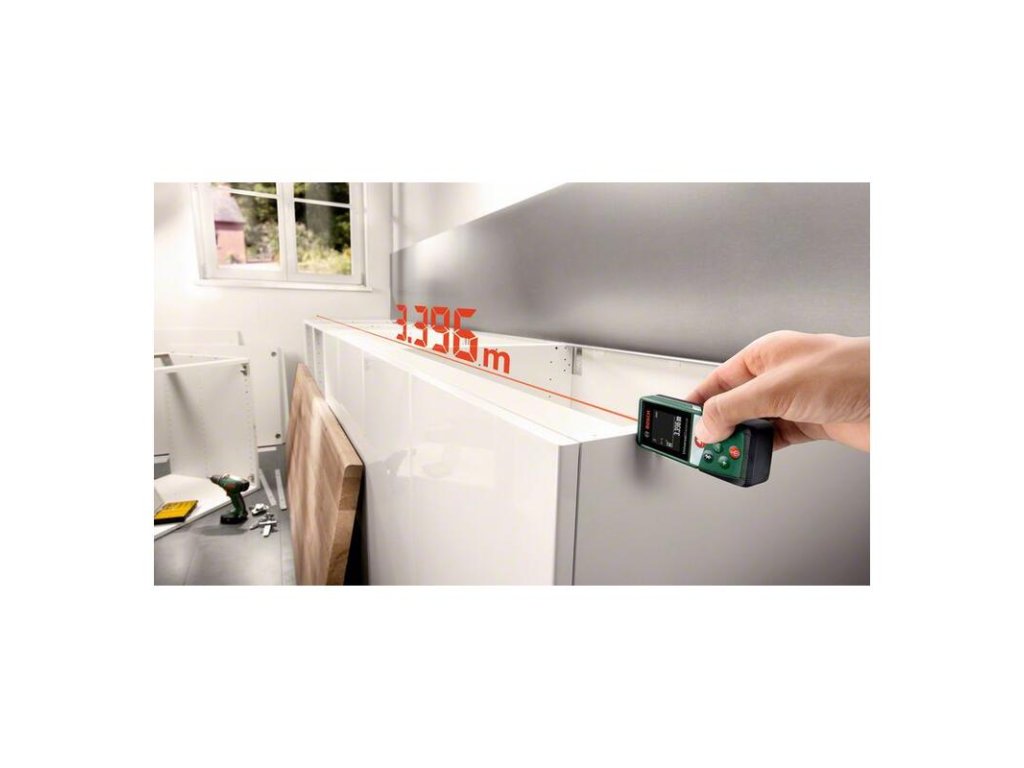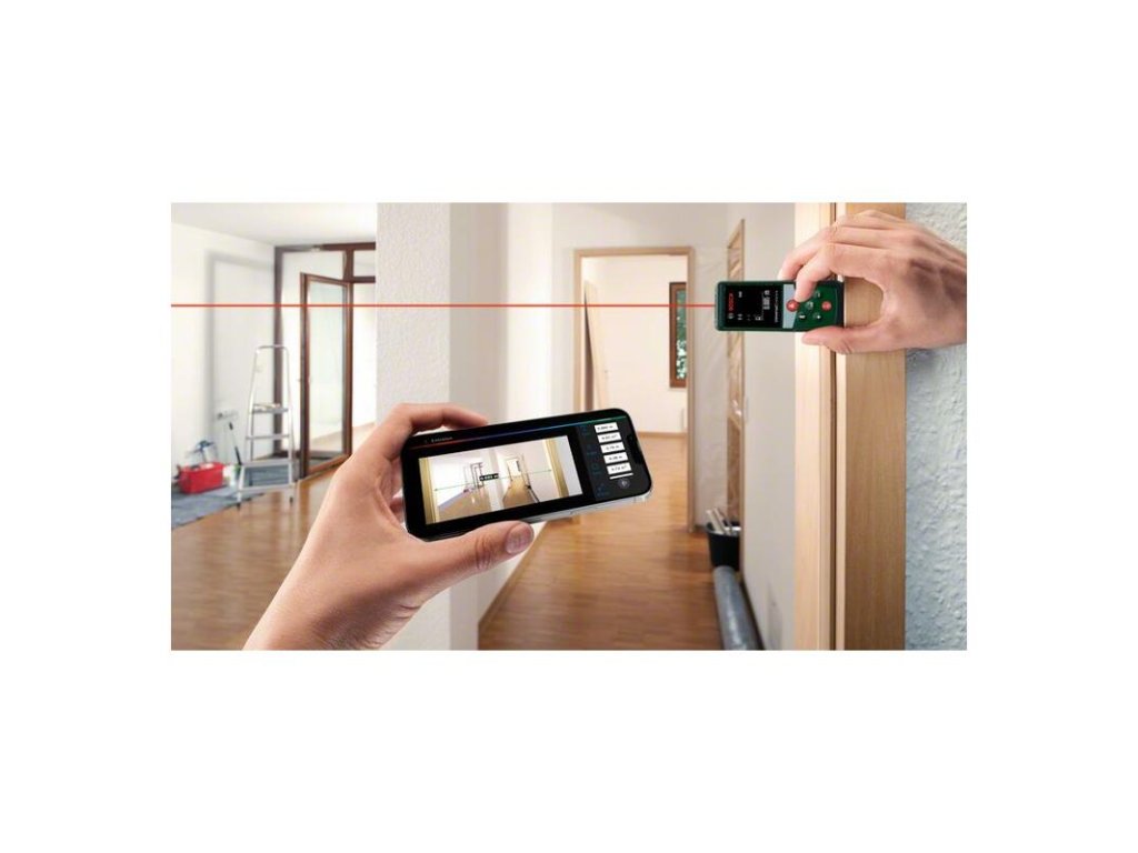 Digitálny laserový merač vzdialeností UniversalDistance 50C; Presné meranie až do vzdialenosti 50 m s dokumentáciou do pripojenej aplikácie; Presné laserové meranie vzdialenosti až do 50 m; Pripojiteľnosť Bluetooth umožňuje prenos výsledkov do aplikácie Bosch; Integrované funkcie na jednoduché meranie dĺžky, plochy a objemu; Ideálne na výpočet štvorcových metrov pri určovaní potreby tapety alebo farby; Funkcie zahrnujú pripočítanie/odpočítanie merania a min./max. merania; Náradie podporuje trvalú udržateľnosť, viac podrobností nájdete nižšie; 2 batérie 1,5 V LR03 (AAA); Mäkký vak; V škatuli