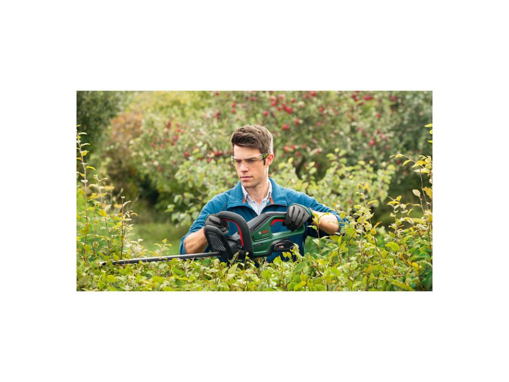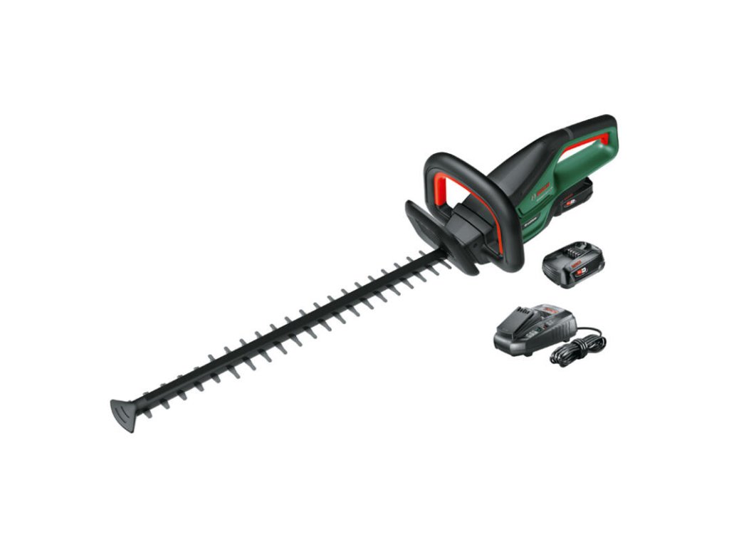 Akumulátorové nožnice na živé ploty UniversalHedgeCut 18V-55; Silné, ľahké nožnice na živý plot triedy 18 V na presné strihanie stredne veľkých živých plotov; Vysoký výkon a dlhá životnosť vďaka bezuhlíkovému motoru; Strihá hrubšie konáre bez zasekávania vďaka patentovanému antiblokovaciemu systému Bosch; Ľahká konštrukcia minimalizuje únavu používateľa; Strihá stredne veľké živé ploty rozličných druhov s konármi hrúbky až 20 mm; Laserom rezané, diamantom brúsené nože; 1 akumulátor PBA 18V 2.5Ah; 1 akumulátor PBA 18V 2.5Ah; Nabíjačka AL 1830 CV; V škatuli