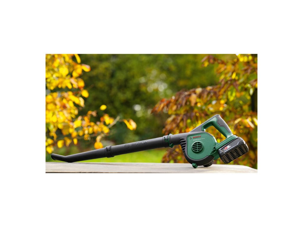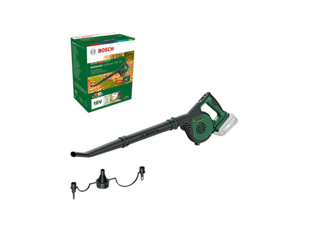 Akumulátorový fúkač lístia UniversalLeafBlower 18V-130; Ľahký akumulátorový záhradný fukár na rýchle a jednoduché čistenie v exteriéri; Jednoduché čistenie listov a drobných nečistôt z malých až stredne veľkých plôch; Ľahké a kompaktné náradie: hmotnosť len 1,6 kg a kompaktná ergonomická rukoväť; Jednoduché 2-rýchlostné ovládanie na všestranné čistenie; Rýchle a výkonné náradie s rýchlosťou prietoku vzduchu až 245 km/h; Technológia Syneon na optimálny výkon alebo maximálnu výdrž podľa potreby; Kompatibilné s akumulátorom Bosch 18V POWER FOR ALL; Kartónová škatuľa