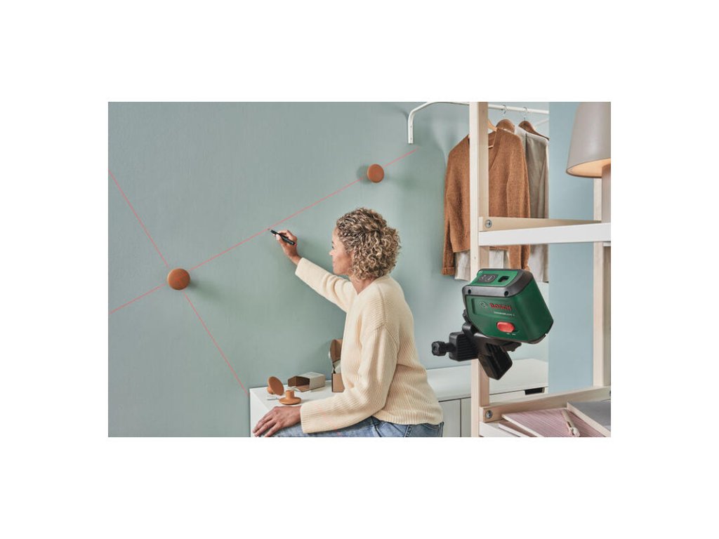 Premeňte svoje nápady na realitu s maximálnou presnosťou vďaka krížovému laseru UniversalLevel 2. Tento prístroj premieta laserový kríž a doplnkové zvislé body, čo zjednodušuje inštaláciu svietidiel, políc či obkladov. Samonivelačná funkcia zaručuje vždy perfektnú rovinu.