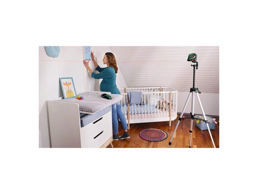 Krížový čiarový laser UniversalLevel 2; Prenesie nápady presne na stenu; Presná projekcia laserového kríža s doplnkovým vynášaním horných a dolných bodov zvislíc; Laserové body a línie sa automaticky zarovnávajú a sú priame vďaka samonivelačnej funkcii; Funkcia sklonu na prácu mimo samonivelačného rozsahu s diagonálnymi laserovými líniami; Vysokokvalitné, jasné laserové diódy s presnosťou ±0,5 mm/m na presné pracovné výsledky; Uhol apertúry 120° na dlhé laserové línie aj na krátke pracovné vzdialenosti; Náradie podporuje trvalú udržateľnosť, viac podrobností nájdete nižšie; 3× batéria 1,5 V LR6 (AA); Mäkký vak; V škatuli