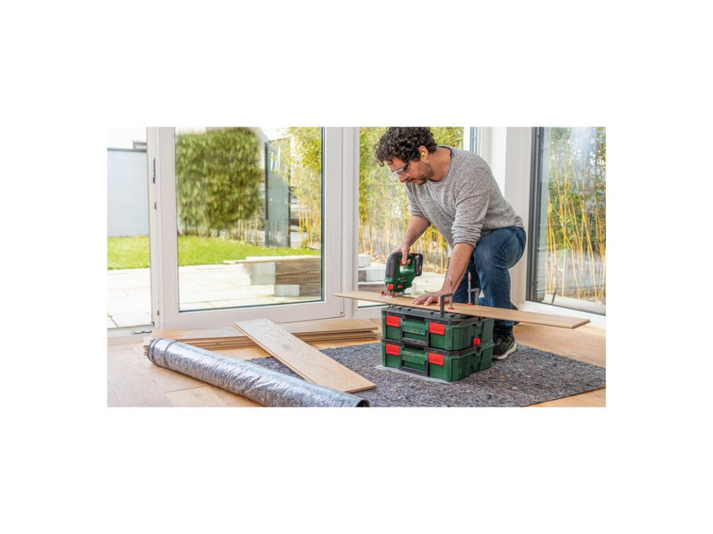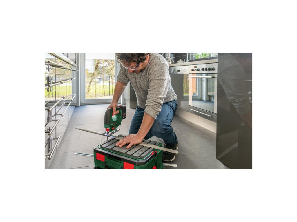 Akumulátorová priamočiara píla UniversalSaw 18V-100; Výkonné univerzálne náradie na presné alebo rýchle rezanie vďaka funkcii predkmitu; Hĺbka rezu 100 mm a rozličné príslušenstvo zaručuje presvedčivé výsledky; Rýchle rezanie vďaka 4-krokovému výkyvu; Spúšť s variabilnou rýchlosťou na komfortné používanie, funkciou plynulého spustenia a úpravy výkonu; Priame a oblé rezy drevených pracovných dosák, parketových podlahovín a hliníkových profilov; Systém SDS umožňuje ľahkú výmenu pílového listu; 2 pílové listy T 144 D (2.608.630.040)**; CutControl (2.609.256.981); Chránič proti vytŕhaniu materiálu (2.607.010.079)**; Ochranná pätka (1.600.A02.4NL); Priehľadný ochranný kryt (2.609.004.220); ** možnosť dokúpenia iba ako súprava po 5 ks; Kartónová škatuľa