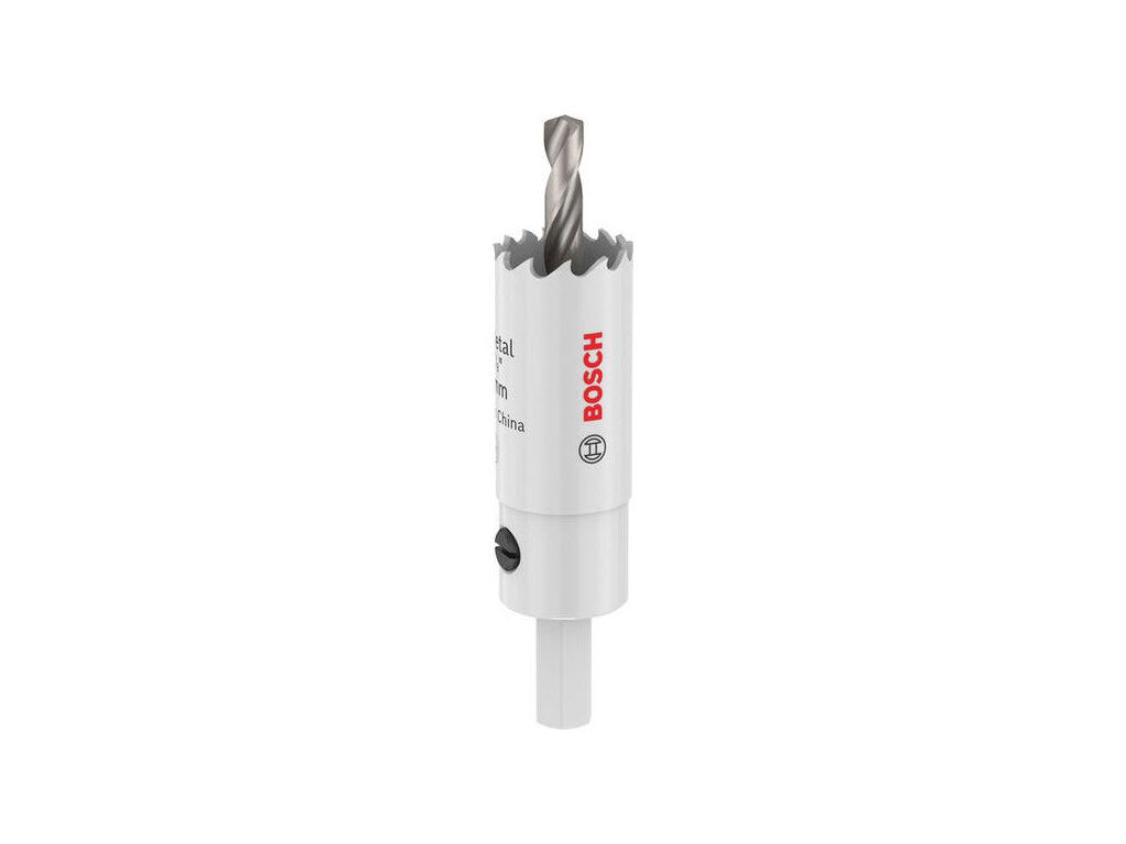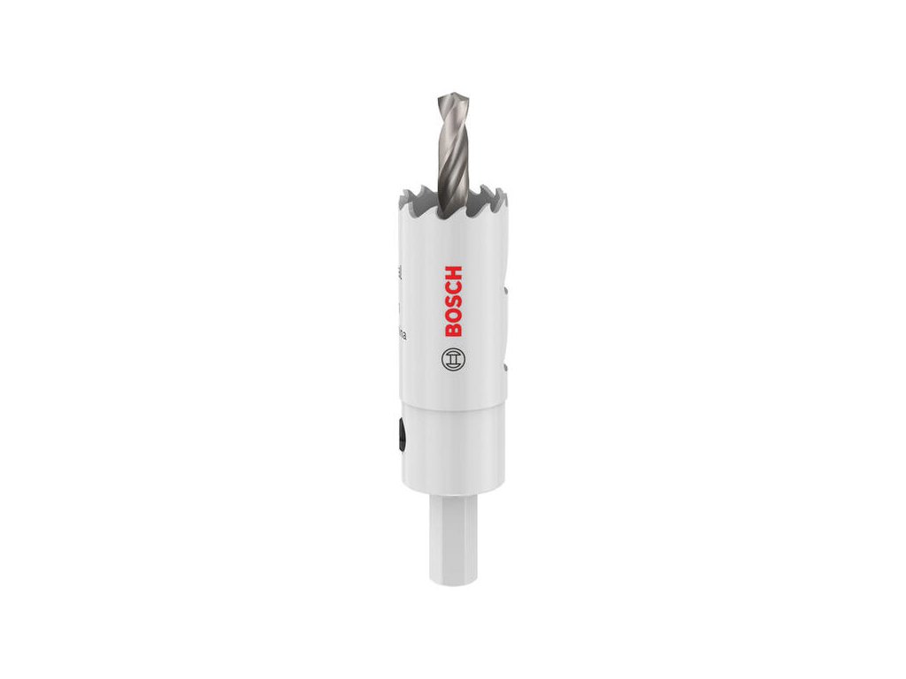 Pre otvory s priemerom 22 mm je tu bimetalová dierovka Bosch. Tento univerzálny nástroj je vyrobený z odolného bimetalu, čo mu umožňuje rezať do dreva, kovu, plastu aj sadrokartónu bez nutnosti výmeny vrtáka.