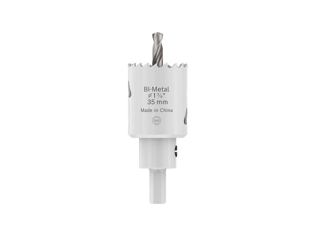 Pre otvory s priemerom 35 mm je tu bimetalová dierovka Bosch. Tento univerzálny nástroj je vhodný pre široké spektrum materiálov, od ocele až po drevo a plasty. Vďaka bimetalovej konštrukcii je odolná a trvácna.
