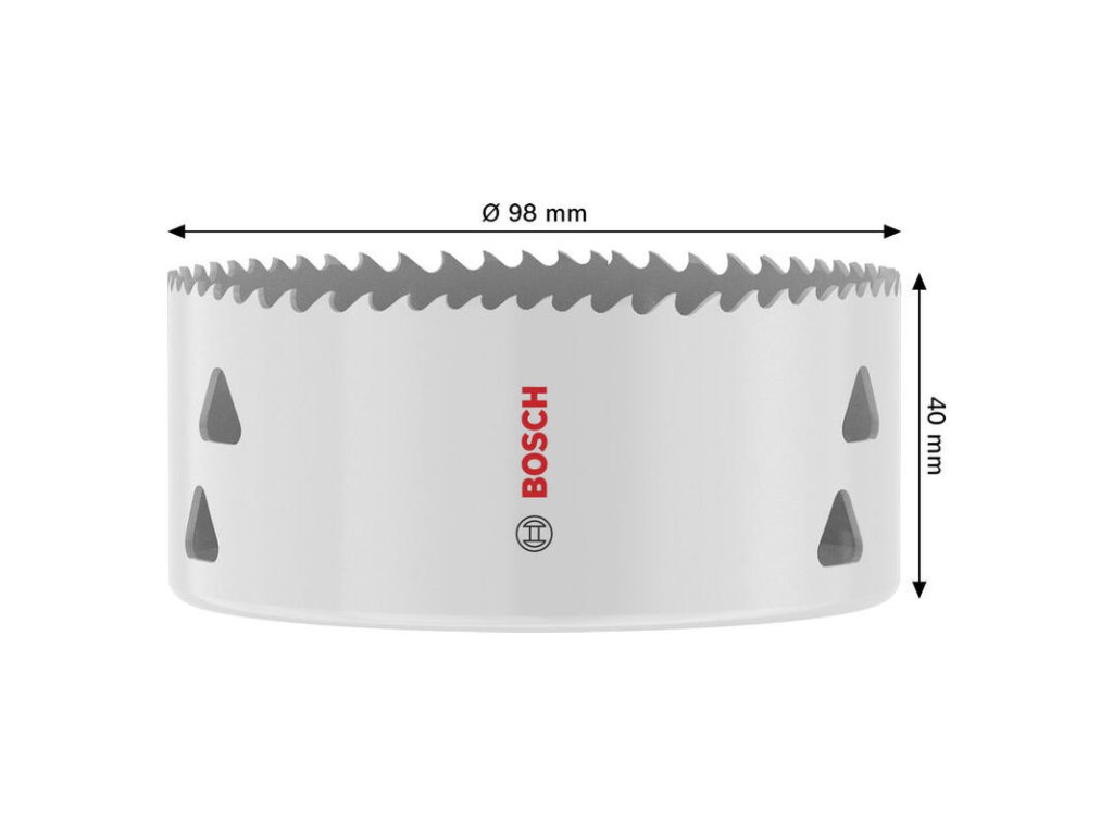 Pre otvory s priemerom 98 mm je tu bimetalová dierovka Bosch. Tento univerzálny nástroj je vhodný pre vŕtanie do ocele, dreva, plastov a sadrokartónu. Bimetalová konštrukcia zaisťuje dlhú životnosť a odolnosť.