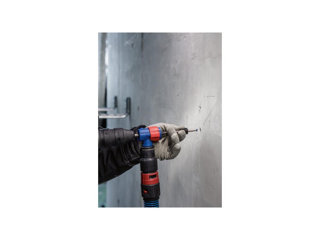 Vŕtanie do železobetónu s pokročilým znížením prašnosti! Inštalatéri a stavební robotníci dobre vedia, že pri vŕtaní do betónu vzniká veľké množstvo prachu. Mimoriadne nepríjemné je to v prípade, že potrebujete vŕtať nad hlavou alebo vŕtať a čistiť množstvo otvorov na chemické alebo mechanické kotvy. Na tieto náročnejšie úlohy sme navrhli vrták EXPERT SDS Clean plus-8X. Vŕta a zároveň zbavuje prachu a nečistôt, čím vám pomôže zbaviť sa únavného čistenia. EXPERT SDS Clean plus-8X vám pomôže odstrániť prach pri vŕtaní nad hlavou alebo pri práci s radom otvorov na mechanické a chemické kotvy. Vrták sa dodáva so 4-britou karbidovou hlavou a je vybavený vnútorným sacím kanálom. Funguje s redukciou SDS Clean plus, ktorá je vhodná na všetky vrtáky SDS Clean plus-8X a možno ju ľahko namontovať a demontovať. Redukcia pripája vrták k väčšine odsávačov prachu a zaisťuje odsávanie prachu a malých kúskov betónu z otvoru prostredníctvom integrovaného sacieho kanála. Vopred namontovaný kryt proti prachu vám pomôže zachytiť nečistoty a prach, ktoré vzniknú, keď začnete vŕtať.