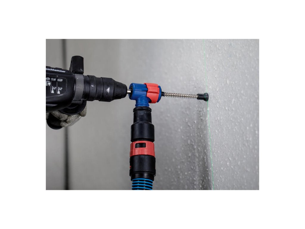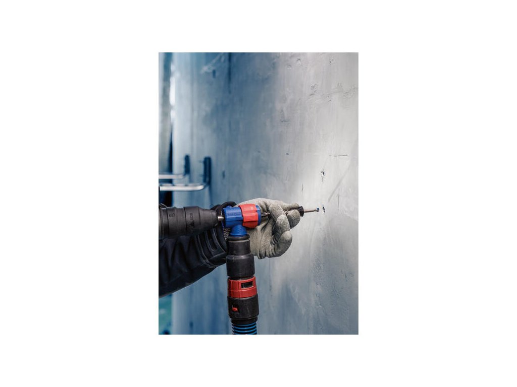 Vŕtanie do železobetónu s pokročilým znížením prašnosti! Inštalatéri a stavební robotníci dobre vedia, že pri vŕtaní do betónu vzniká veľké množstvo prachu. Mimoriadne nepríjemné je to v prípade, že potrebujete vŕtať nad hlavou alebo vŕtať a čistiť množstvo otvorov na chemické alebo mechanické kotvy. Na tieto náročnejšie úlohy sme navrhli vrták EXPERT SDS Clean plus-8X. Vŕta a zároveň zbavuje prachu a nečistôt, čím vám pomôže zbaviť sa únavného čistenia. EXPERT SDS Clean plus-8X vám pomôže odstrániť prach pri vŕtaní nad hlavou alebo pri práci s radom otvorov na mechanické a chemické kotvy. Vrták sa dodáva so 4-britou karbidovou hlavou a je vybavený vnútorným sacím kanálom. Funguje s redukciou SDS Clean plus, ktorá je vhodná na všetky vrtáky SDS Clean plus-8X a možno ju ľahko namontovať a demontovať. Redukcia pripája vrták k väčšine odsávačov prachu a zaisťuje odsávanie prachu a malých kúskov betónu z otvoru prostredníctvom integrovaného sacieho kanála. Vopred namontovaný kryt proti prachu vám pomôže zachytiť nečistoty a prach, ktoré vzniknú, keď začnete vŕtať.