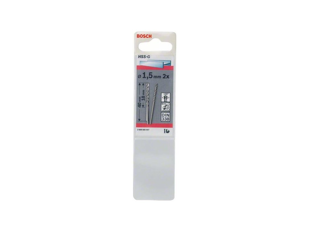 Bosch Vrták do kovu HSS-G, 1,5 x 18/40 mm, 2ks, 2.608.585.907