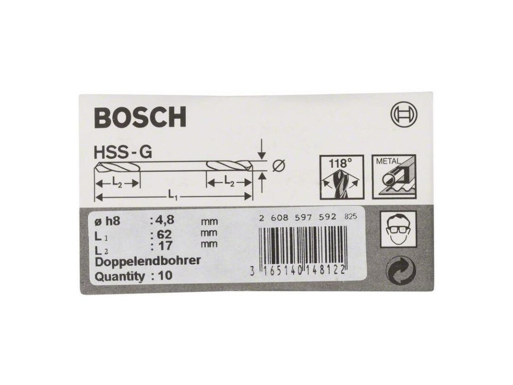 Bosch Vrták do kovu HSS-G, 4,8 x 17/62 mm, 10ks, 2.608.597.592