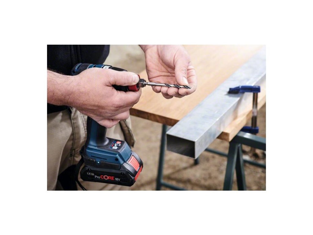 Špirálový vrták HSS PointTeQ so šesťhrannou stopkou umožňuje dosiahnuť rýchle výsledky pri vŕtaní do kovu. Je navrhnutý na vysokorýchlostné vŕtanie, vytvára minimum tepla a minimálne sa opotrebováva. Je vybavený hrotom PointTeQ, ktorý zaisťuje neustálu ostrosť a vysokú trvácnosť. Samostrediaci hrot bráni vychyľovaniu a umožňuje rýchlo a jednoducho začať vŕtať. Jeho brunírovaná drážka zaisťuje rýchle odvádzanie triesok. Na zaistenie ešte vyššej spoľahlivosti ponúka šesťhranná stopka vrtáka stabilitu a pevné uchytenie vrtáka v skľučovadle. Tým sa posilní telo vrtáka a zníži riziko zlomenia vrtáka s priemerom do 6 mm. Špička s krížovým výbrusom špirálového vrtáka HSS PointTeQ umožňuje aktívne rezanie a dokonalé centrovanie. Vrták typu N (uhol skrutkovnice) so 135° špičkou, vyrobený podľa normy DIN 338.