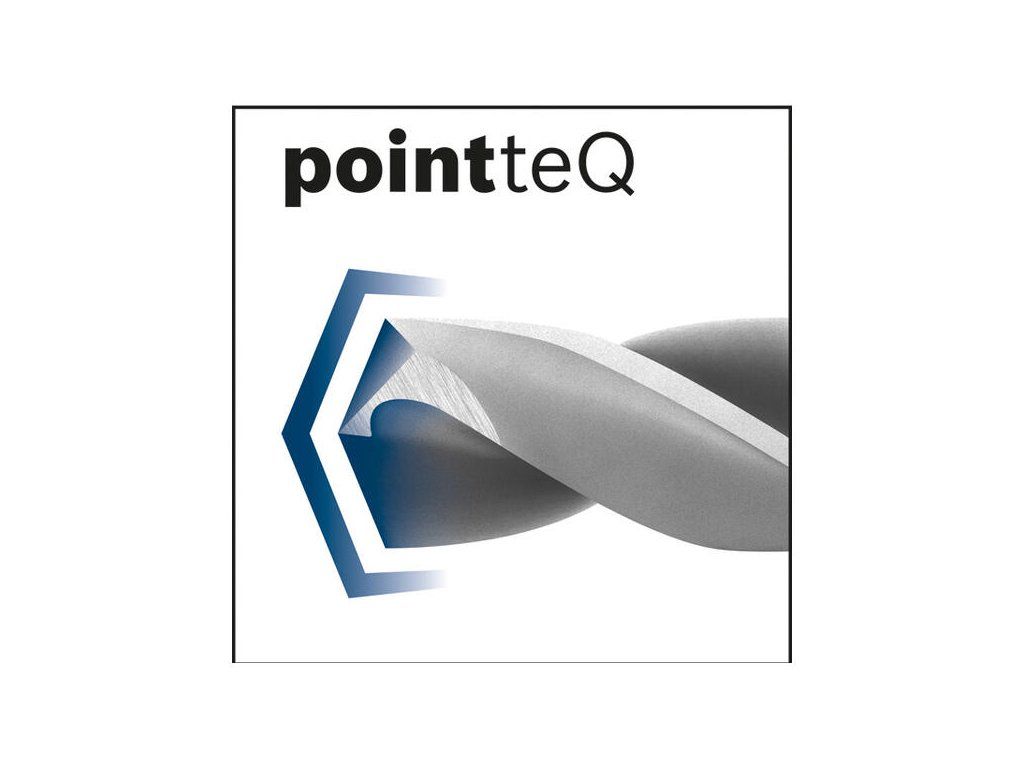 Špirálový vrták HSS PointTeQ so šesťhrannou stopkou umožňuje dosiahnuť rýchle výsledky pri vŕtaní do kovu. Je navrhnutý na vysokorýchlostné vŕtanie, vytvára minimum tepla a minimálne sa opotrebováva. Je vybavený hrotom PointTeQ, ktorý zaisťuje neustálu ostrosť a vysokú trvácnosť. Samostrediaci hrot bráni vychyľovaniu a umožňuje rýchlo a jednoducho začať vŕtať. Jeho brunírovaná drážka zaisťuje rýchle odvádzanie triesok. Na zaistenie ešte vyššej spoľahlivosti ponúka šesťhranná stopka vrtáka stabilitu a pevné uchytenie vrtáka v skľučovadle. Tým sa posilní telo vrtáka a zníži riziko zlomenia vrtáka s priemerom do 6 mm. Špička s krížovým výbrusom špirálového vrtáka HSS PointTeQ umožňuje aktívne rezanie a dokonalé centrovanie. Vrták typu N (uhol skrutkovnice) so 135° špičkou, vyrobený podľa normy DIN 338.