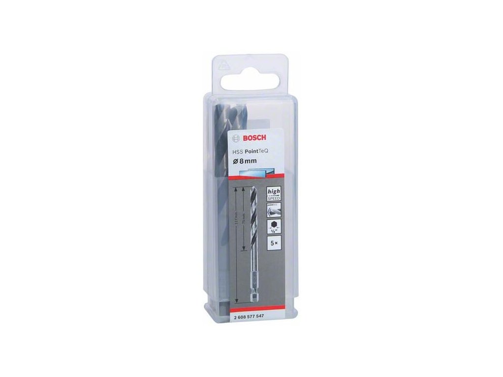 Bosch Vrták do kovu HSS PointTeQ, 8 x 75/117 mm, 5ks, 2.608.577.547