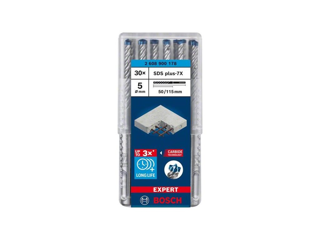 Bosch Vrták EXPERT SDS Plus-7X do železobetónu 5 x 50/115 (30ks), 2.608.900.178