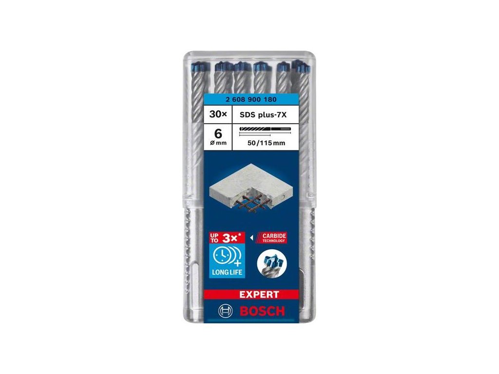 Bosch Vrták EXPERT SDS Plus-7X do železobetónu 6 x 50/115 (30ks), 2.608.900.180