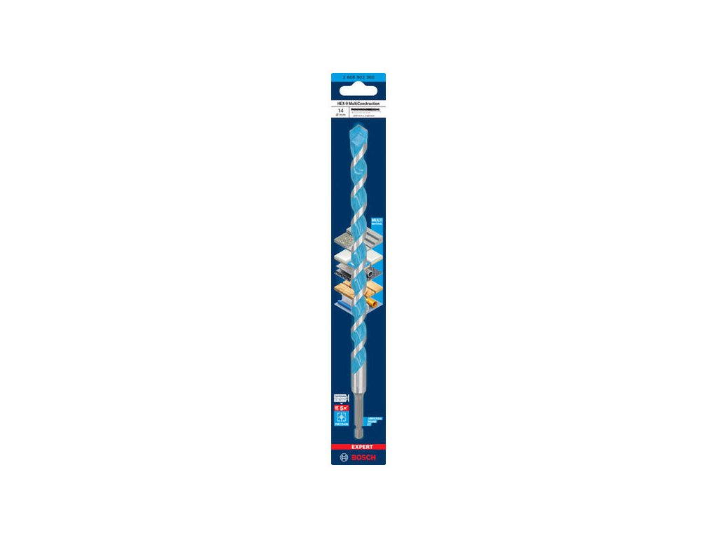 Vysoká presnosť vŕtania do viacerých materiálov! Moderné stavenisko si vyžaduje prácu s mnohými rôznymi materiálmi a vy nikdy neviete, aký ďalší materiál budete vŕtať ako ďalší. Nájsť ten správny vrták môže byť ťažké a zdĺhavé – teda ak nemáte vrták EXPERT Multi Construction. Vrták Bosch EXPERT HEX-9 Multi Construction je presne tým jedným vrtákom, ktorý by ste mali mať vždy v kufri s náradím: nikdy sa pri práci nezaseknete ani nemrháte časom hľadaním správneho vrtáka.