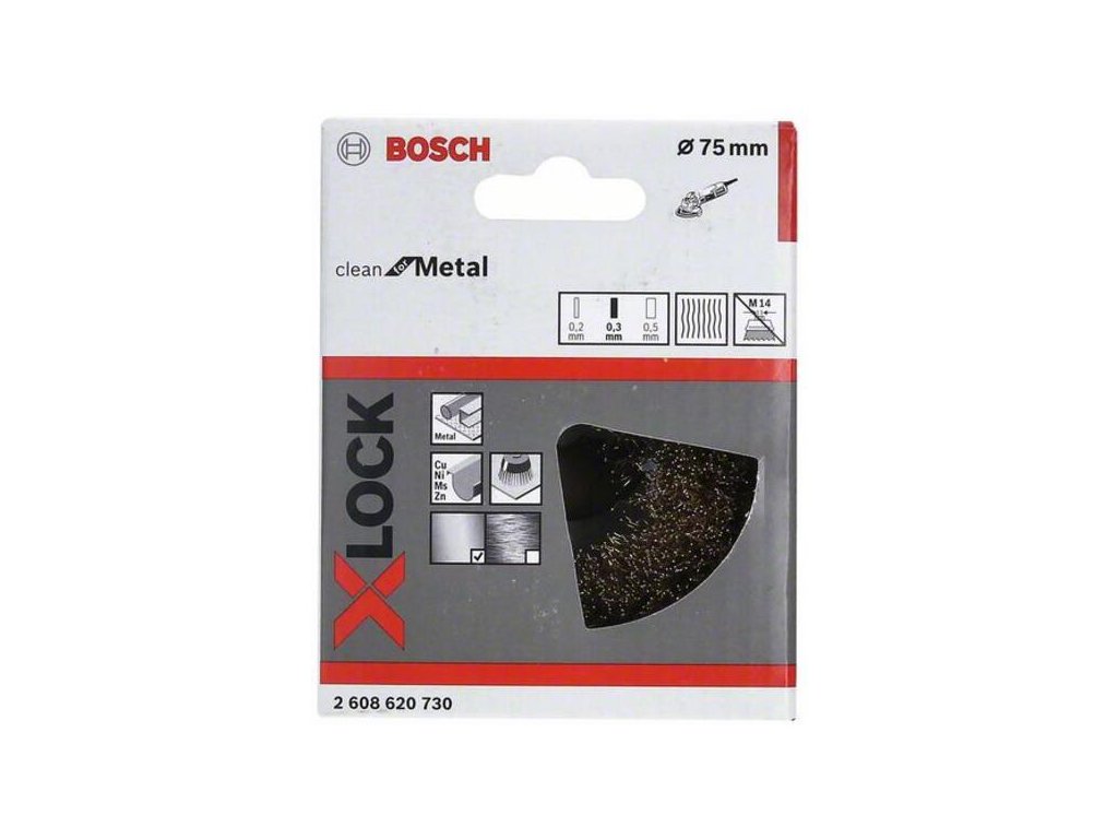 Bosch X-LOCK Drôtená hrncová oceľová kefa vlnitá mosadz D75mm 0,3mm 2608620730