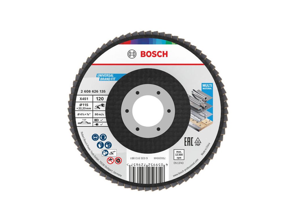 Bosch X451 Lamelový brúsny kotúč 115 mm, P120, Rovný (T27), 60 ks, 2.608.626.135