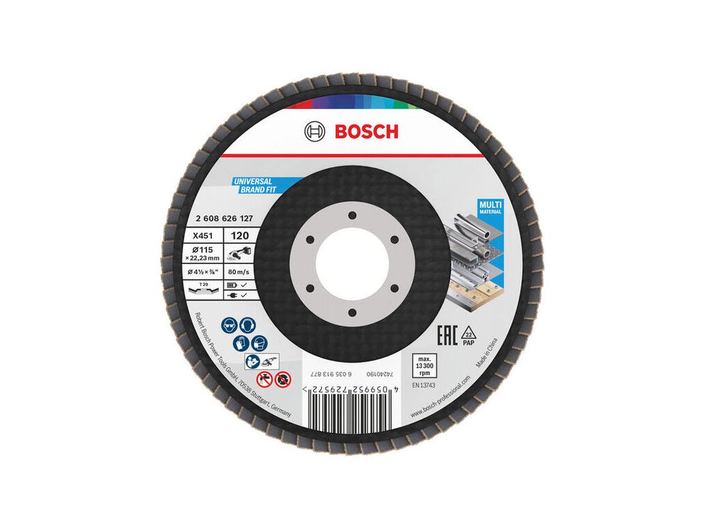 Bosch X451 Lamelový brúsny kotúč 115 mm, P120, Šikmý (T29), Veľké balenie 60 ks