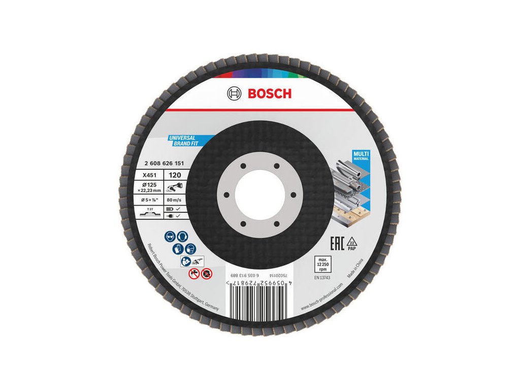 Bosch X451 Lamelový brúsny kotúč 125 mm, P120, Rovný (T27), Veľké balenie 60 ks