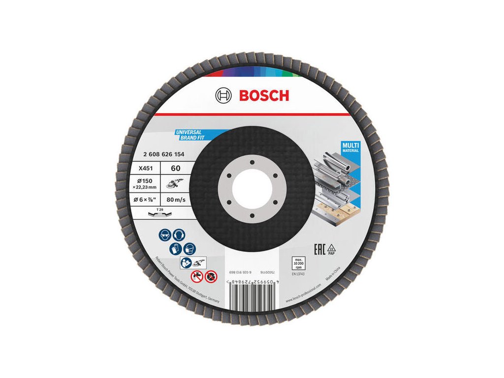 Pre univerzálne brúsenie veľkých plôch s brúskou 150 mm zvoľte kotúč Bosch X451 P60. Poskytuje dobrý pomer medzi rýchlosťou brúsenia a kvalitou povrchu. Ideálny na nerezové nádrže a oceľové nosníky.