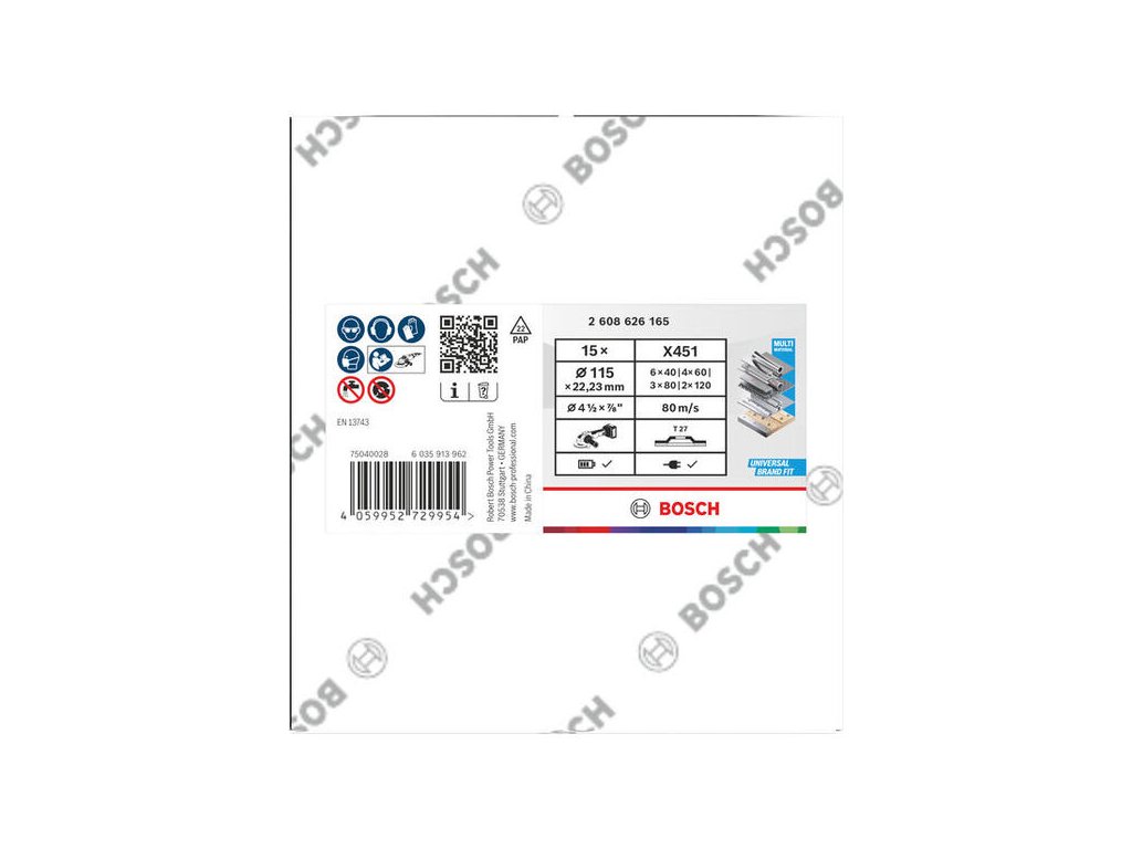 Bosch X451 Sada lamelových kotúčov 115 mm, Rovné (T27), Mix zrnitostí (40-120), 15 ks, 2.608.626.165