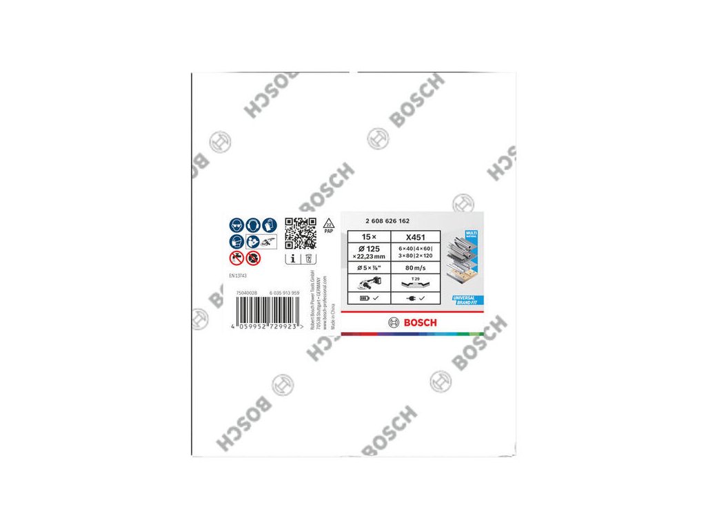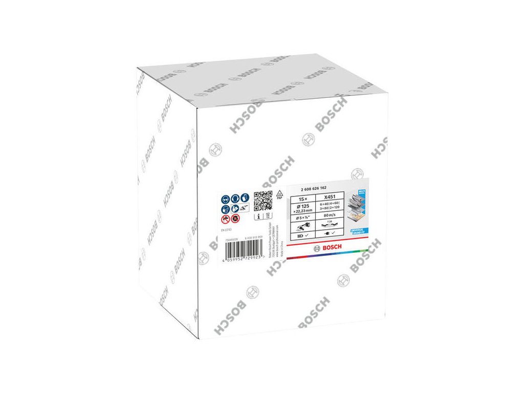 Bosch X451 Sada lamelových kotúčov 125 mm, Šikmé (T29), Mix zrnitostí (40-120), 15 ks, 2.608.626.162