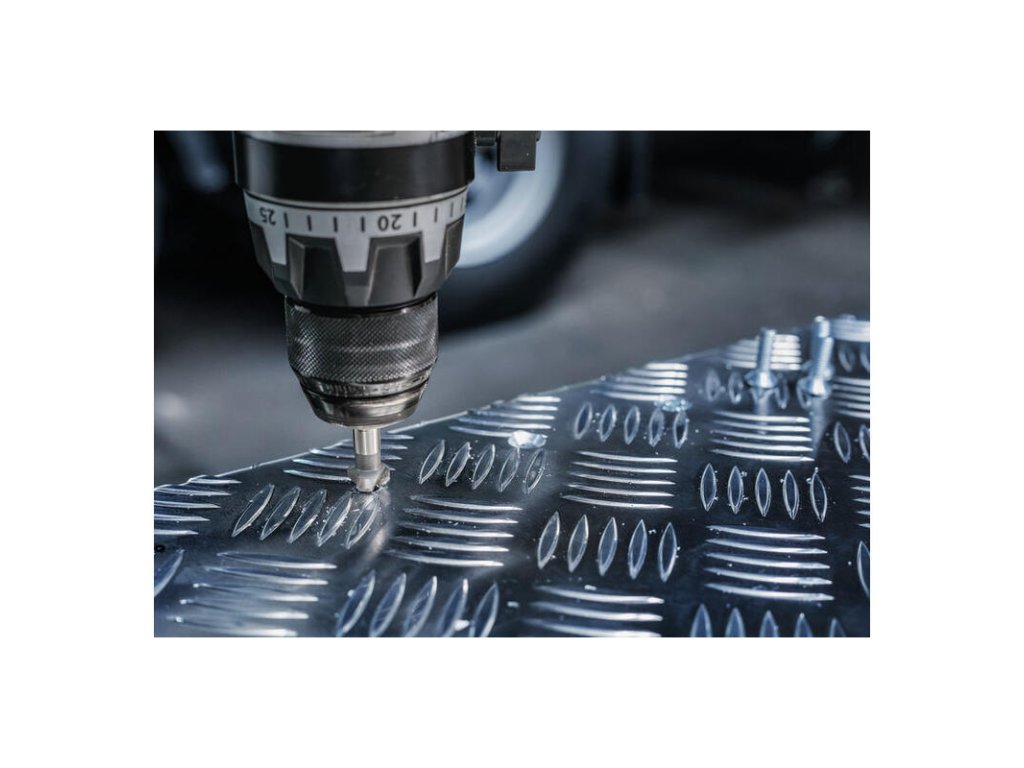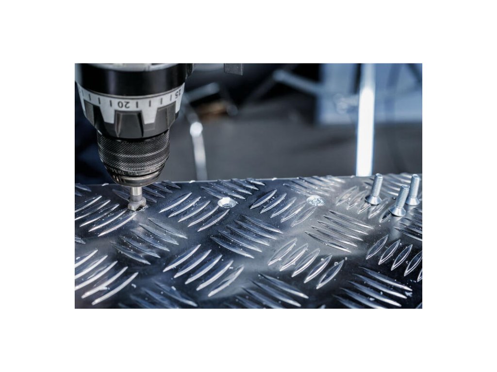 Pre prácu s hliníkom a meďou. Tento záhlbník Bosch má geometriu ostria optimalizovanú pre mäkké kovy, aby sa nezapchával a vytváral čistý povrch. Tri brity zaručujú rýchly odber materiálu bez vibrácií.