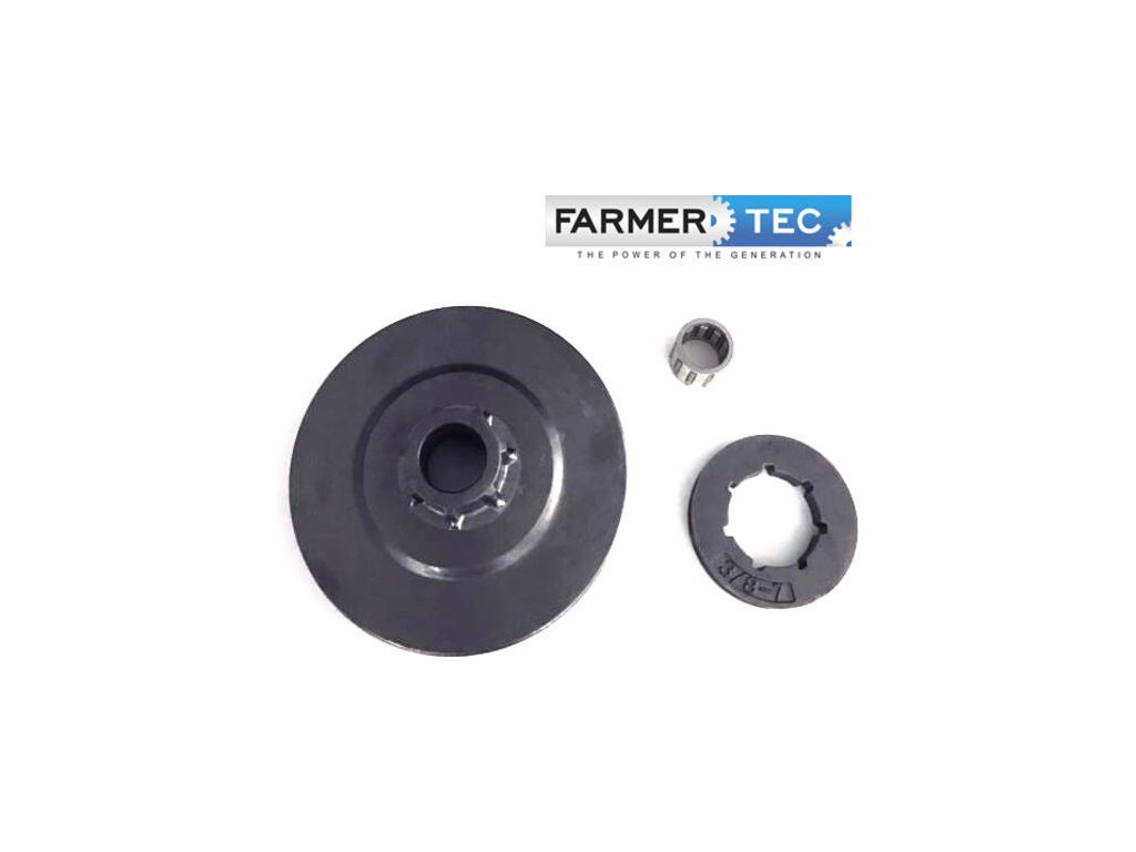 Bubon spojky s delením 3/8 a 7 zubami je dôležitý prevodový diel určený pre čínske motorové píly s objemom 38cc. Zaisťuje správny prenos sily motora na reťaz. Tento bubon je od značky FARMERTEC a má zuby ako samostatný prstenec.