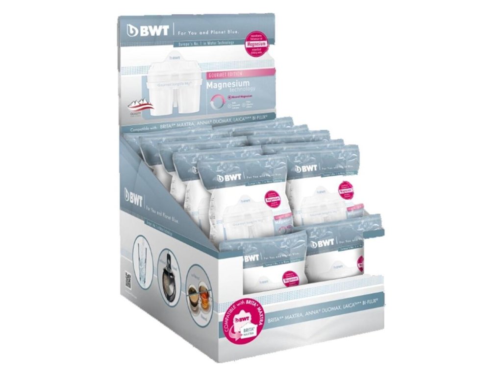 Náhradné filtre. BWT vyvinula unikátnu technológiu Mg2 +, ktoré dáva filtrovanej vode vynikajúcu, plnú prírodnú chuť. Súčasne obohacuje pitnú vodu o ióny zdraviu prospešného horčíka. Filtráciou z vody odstránime škodlivé látky, ako napr. ťažké kovy (kadmium, olovo, zinok a meď, ak sú vo vode prítomné) a ďalšie nežiaduce substancie, ako je vodný kameň, chlór a jeho škodlivé organické zlúčeniny, ktoré zhoršujú chuť vody. * filtruje pitnú vodu a obohacuje jej o ióny zdraviu prospešného horčíka * kapacita filtra: 120 l prefiltrovanej vody / 28 dní * typ filtra: vhodné pre použitie vo všetkých oválnych filtračných systémoch (typ Brita MAXTRA, LAICA Biflux, DAFI Unimax) * vyrobené:Rakúsko