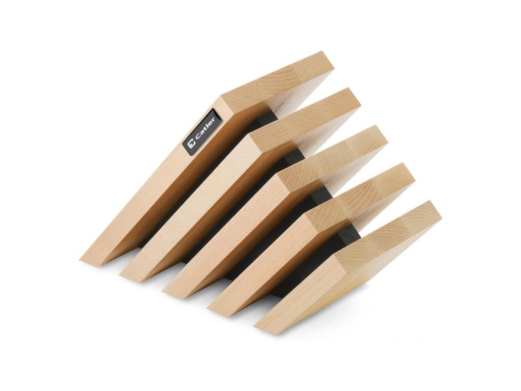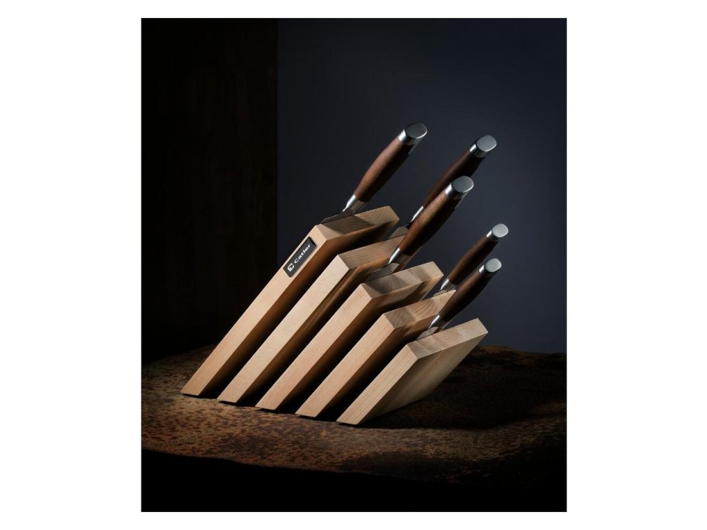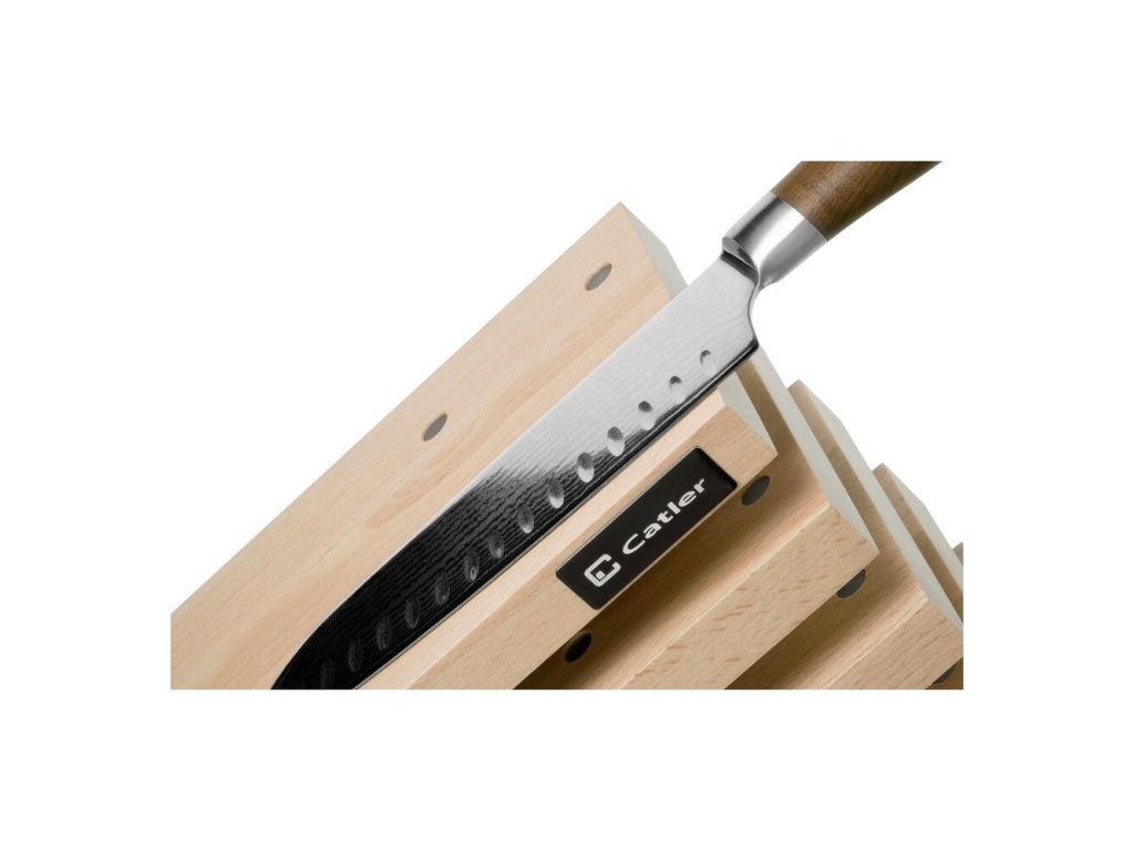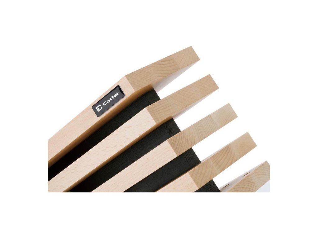 Prekrásny, precízne remeselne vykonaný magnetický stojan na nože sa stane razom ozdobou každej kuchyne. Premyslený tvar jekompaktný a napriek tomu s prehľadom udrží až 10 veľkých nožov. Je vyrobený z bukového dreva výberovej kvality a obsahuje silný