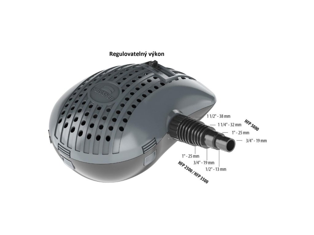 Prúdové a jazierkové čerpadlo HEISSNER HFP2500-00 má veľmi nízku spotrebu energie a vysoký stupeň účinnosti. Pri vývoji sa kládol dôraz na tichú prevádzku, funkčnosť a jednoduché čistenie. Čerpadlá sú určené na filtráciu jazierok do objemu 10 m³, okrasných nádrží, rybníkov, fontán, na pripojenie k filtračným systémom, potokov, vodopádov, okrasných fontán, na cirkuláciu a okysličovanie vody. Pri stálej prevádzke je badateľná nízka spotreba. Jednoduchá údržba vďaka jednoduchej demontáži, bez použitia náradia. Možnosť mechanickej regulácie výkonu čerpadla na jeho kryte. Oceníte pri budovaní potoka, vodopádov. Vďaka regulácii môžete určiť šírku a prietok prúdu. Platí pravidlo, že objem jazierka by sa mal prečerpať 5-krát za 24 hodín, nastaviteľná univerzálna prípojka sa vždy skráti na priemer použitej hadice, aby sa neobmedzoval výkon čerpadla.
