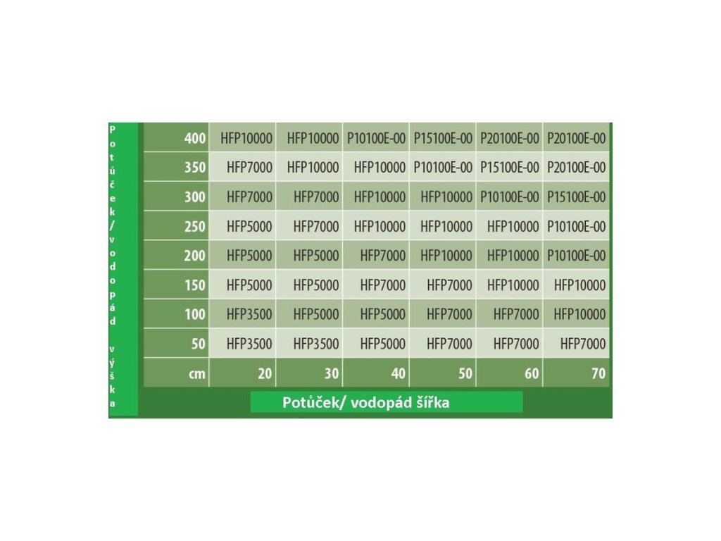 Prúdové a jazierkové čerpadlo HEISSNER HFP7000-00 má veľmi nízku spotrebu energie a vysoký stupeň účinnosti. Pri vývoji sa kládol dôraz na tichú prevádzku, funkčnosť a jednoduché čistenie. Čerpadlá sú určené na filtráciu jazierok do objemu 34 m³, okrasných nádrží, rybníkov, fontán, na pripojenie k filtračným systémom, potokov, vodopádov, okrasných fontán, na cirkuláciu vody a okysličovanie. Pri stálej prevádzke je badateľná nízka spotreba. Jednoduchá údržba vďaka jednoduchej demontáži, bez použitia náradia. Možnosť mechanickej regulácie výkonu čerpadla na jeho kryte. Oceníte pri budovaní potoka, vodopádov. Vďaka regulácii môžete určiť šírku a prietok prúdu. Platí pravidlo, že objem jazierka by sa mal prečerpať 5-krát za 24 hodín, nastaviteľná univerzálna prípojka sa vždy skráti na priemer použitej hadice, aby sa neobmedzoval výkon čerpadla.