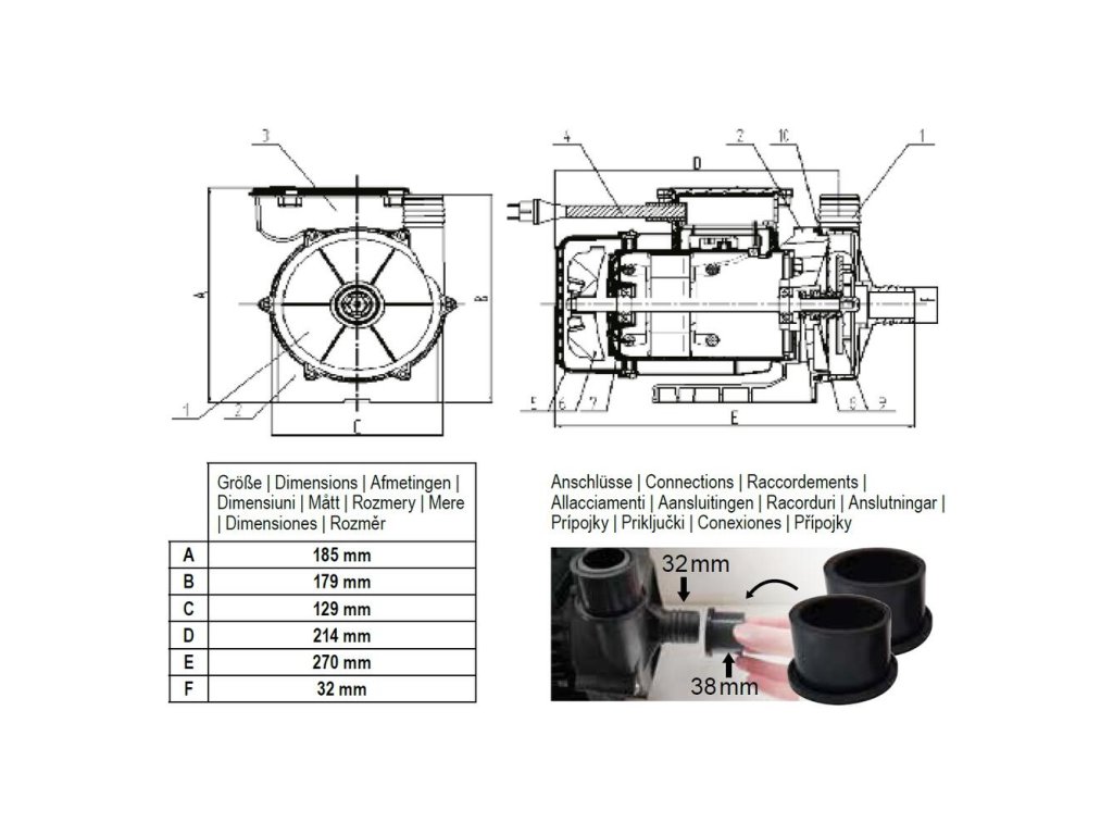 | Pripojenie na strane nasávania a vypúšťania (mm): | 32/38 |
